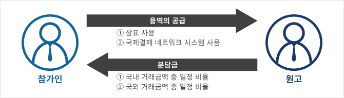 원고는 참가인과 회원자격협약 및 참가인의 상표 등을 국내에서 사용할 수 있는 라이선스계약을 체결하고 국내에서 참가인의 상표를 부착한 신용카드를 발급하여 왔다. 또한 원고는 참가인으로부터 그가 운영하는 국제 결제 네트워크 시스템(이하 '이 사건 시스템'이라고 한다)을 통해 신용카드의 국외 사용이 가능하도록 하는 서비스를 제공받아 왔다.